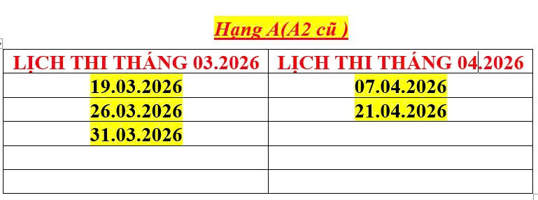 | Nâng A1 → A | Có bằng A1 | Liên hệ |